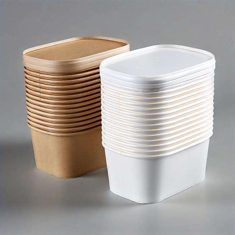Bol en papier kraft rectangulaire jetable écologique 500ml/650ml/750ml/1000ml, anti-fuite, qualité alimentaire, pour sushi, salade, à emporter