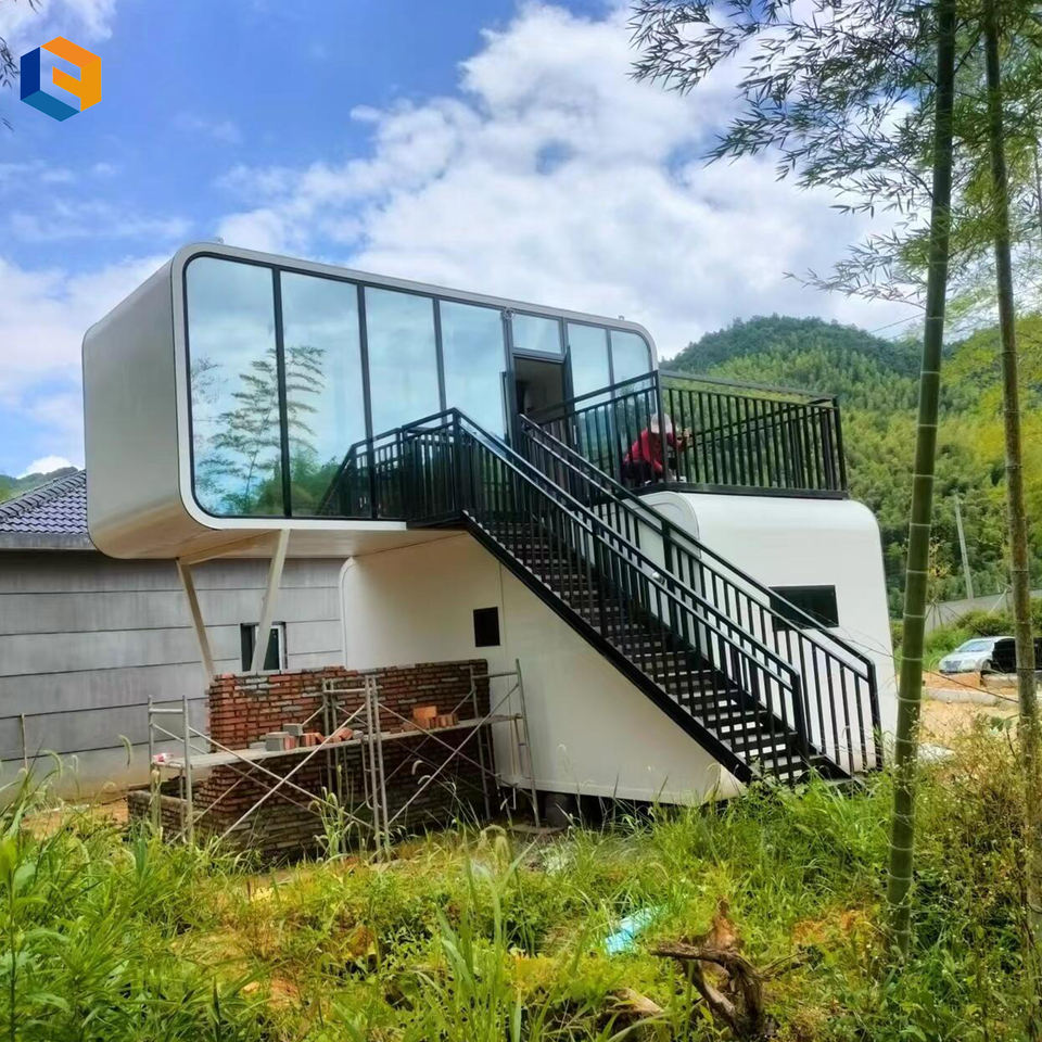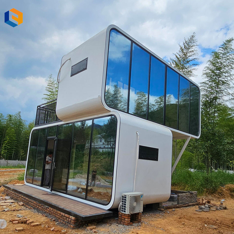 Maisons conteneurs en acier écologiques, durables, pour le travail en extérieur, avec vue 160°, étanches, structure en acier, type Apple House pour villa, chambre à coucher