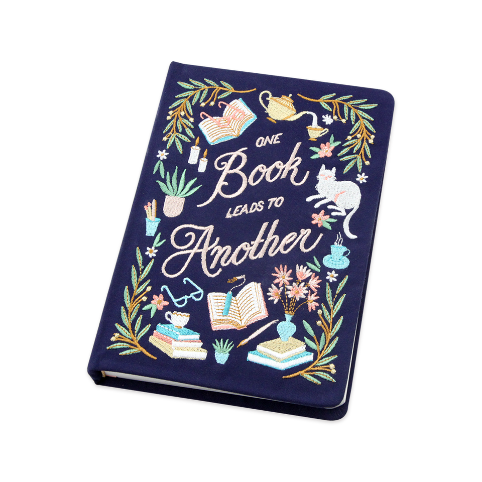 Cahier brodé écologique "Un livre mène à un autre" Journal à couverture rigide en cuir pour les amateurs de papeterie