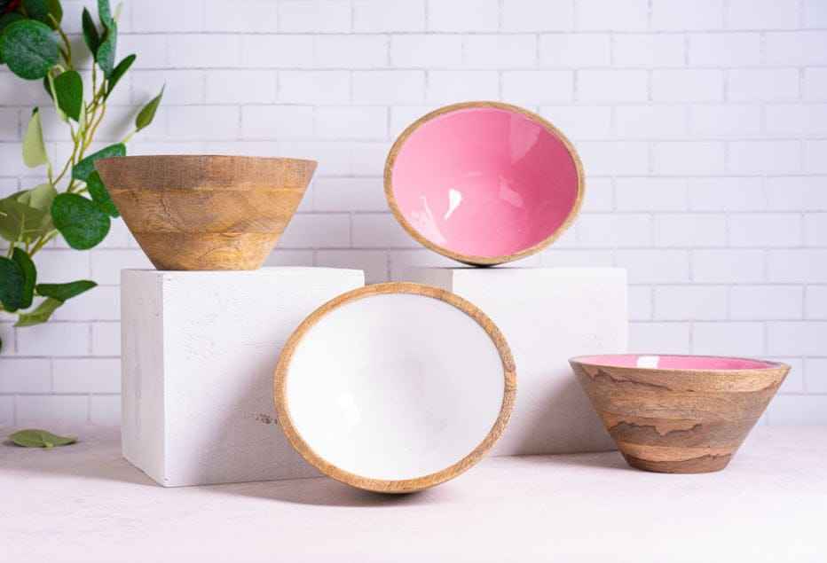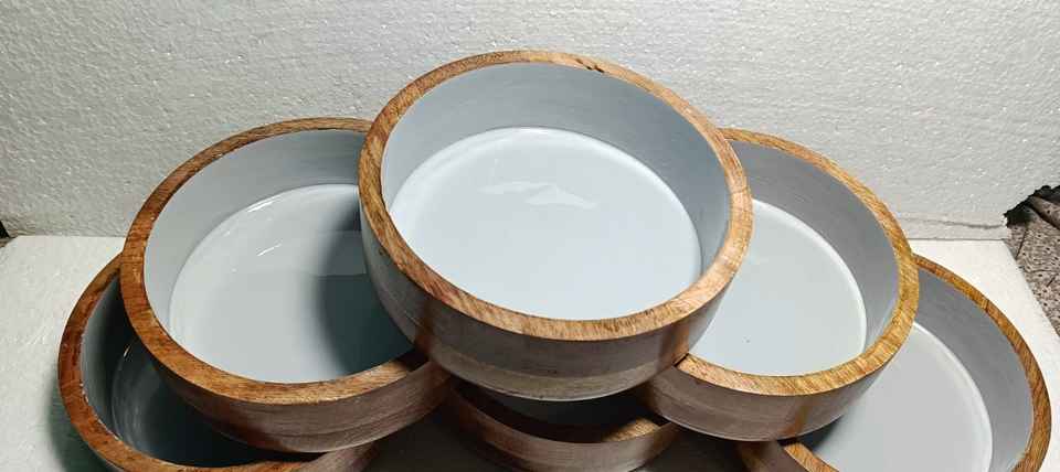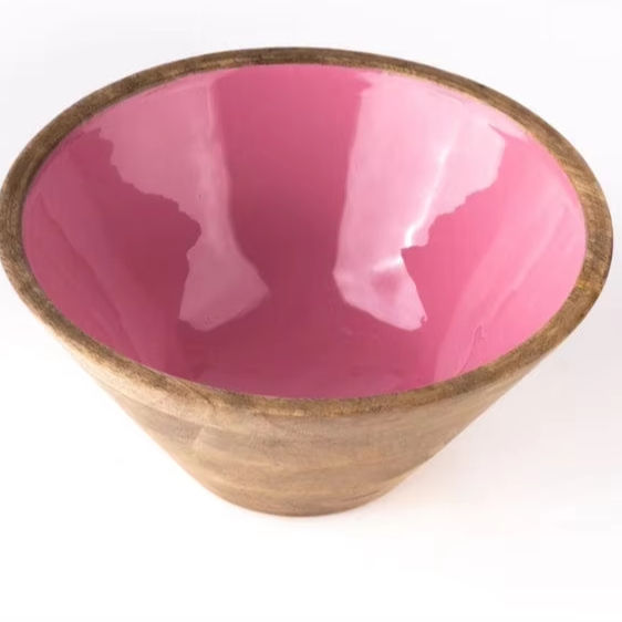 Eco-Friendly Enamel Printed Wooden Bowl Handmade Decorative Piece for Snacks Fruits & Dry Items-Dishwasher Safe Customizable