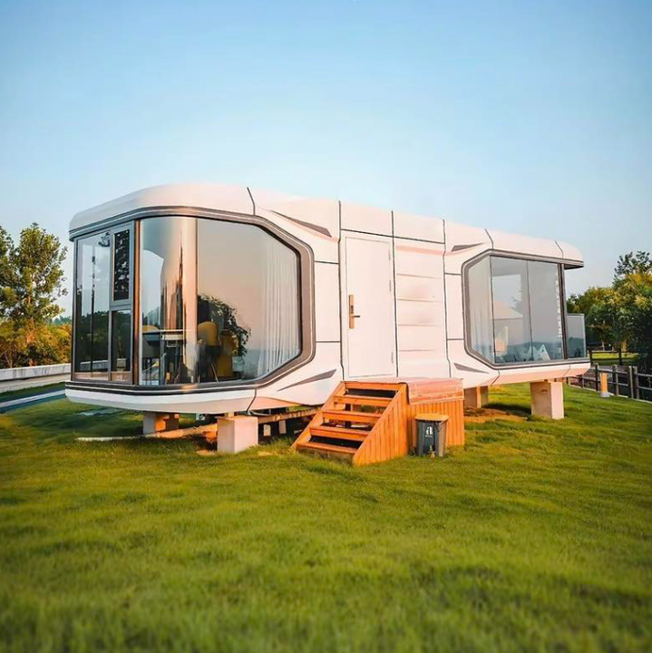 Maisons préfabriquées écologiques extensibles, maisons modulaires en forme de capsule spatiale pour les vacances ou une vie permanente