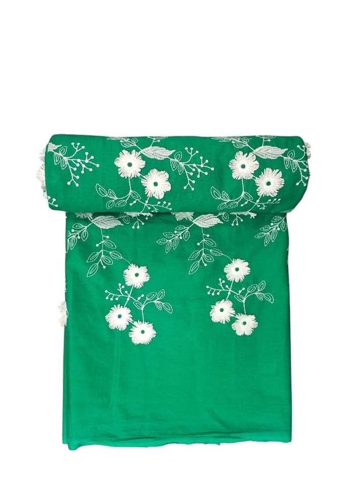 Model Number:Green Cotton Floral Applique Embroidered Fabric
