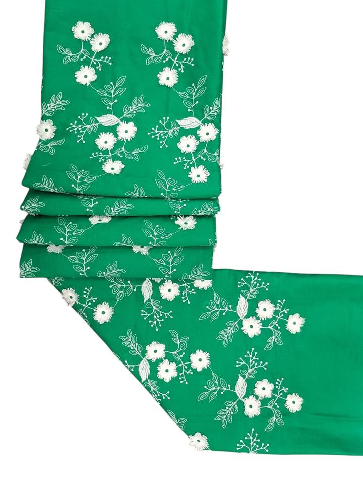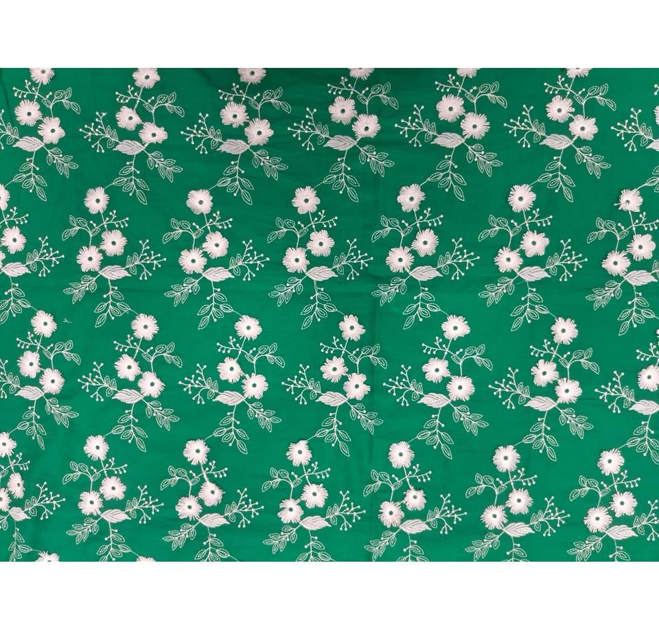 Type:Green Cotton Floral Applique Embroidered Fabric