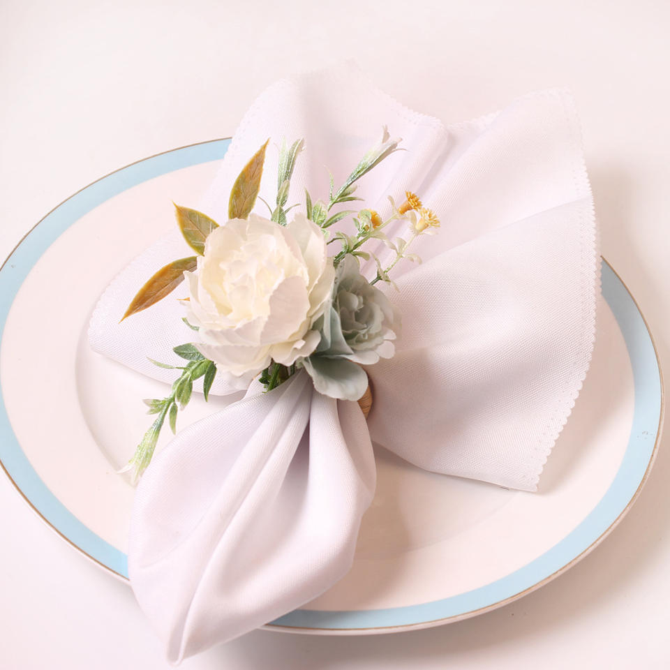 Anneaux de serviette écologiques en verdure artificielle avec perles métalliques, supports durables en plastique PE pour plantes artificielles pour la décoration de tables de mariage et de fêtes