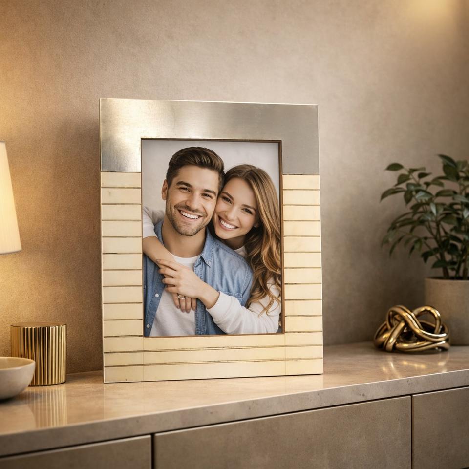 Cadre photo en résine écologique fait main avec panneau frontal en verre véritable pour une utilisation sur le bureau et au mur