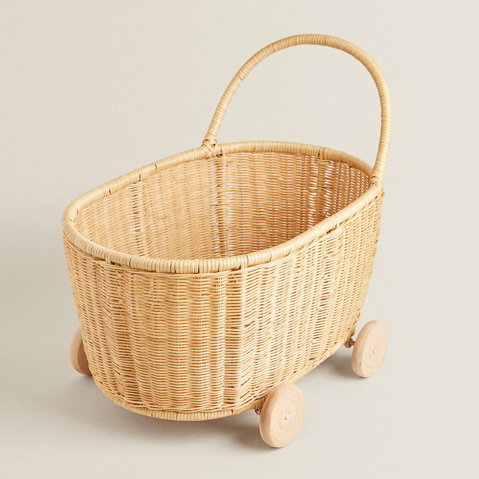 Chariot de poupée en rotin tissé à la main écologique, landau en gros, poussette pour poupées, jouets modernes pour enfants