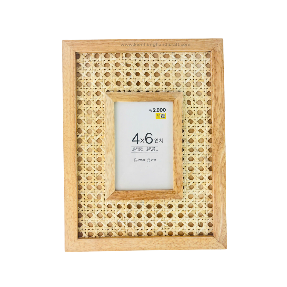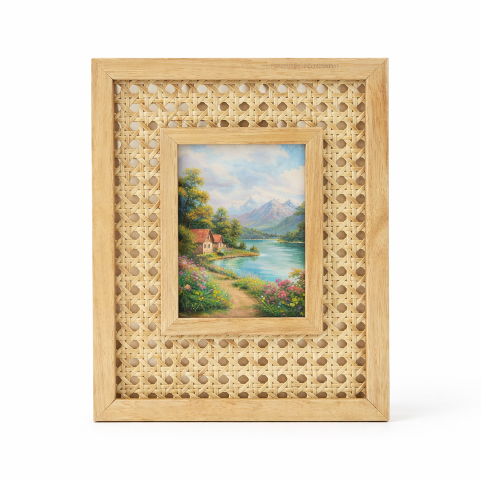 Eco Friendly Handwoven Bamboo Wooden Photo Frame with Flower Art for Living Room Decor