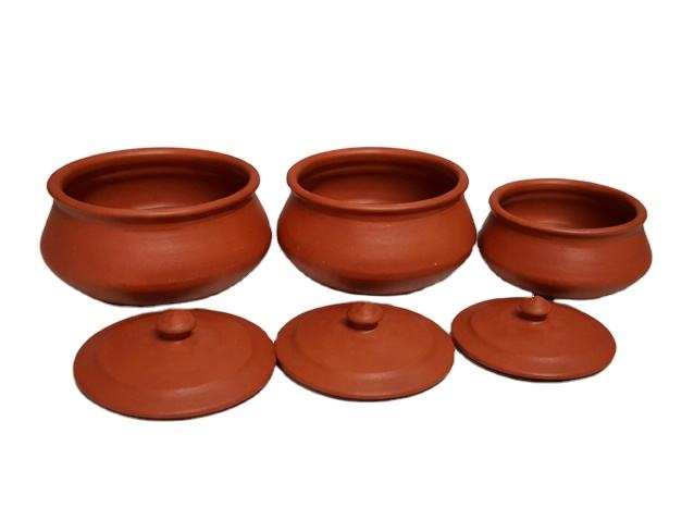 Ensemble de casseroles en terre cuite de style campagnard, écologiques, saines, antiadhésives, résistantes à la rouille, nouveau design (ensemble de 3 couvercles) pour cuisinière à gaz