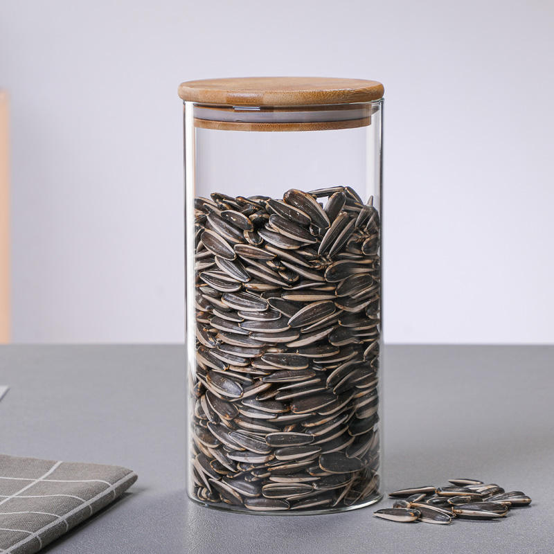 Bocal de stockage en verre borosilicaté écologique avec couvercle en bambou pour la cuisine