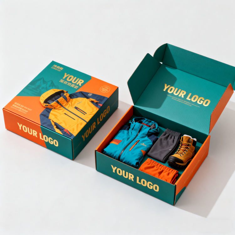 Boîte d'expédition en kraft écologique avec poignée, pelliculage mat, impression personnalisée, emballage rigide ondulé pour vêtements, chaussettes, et articles d'avion