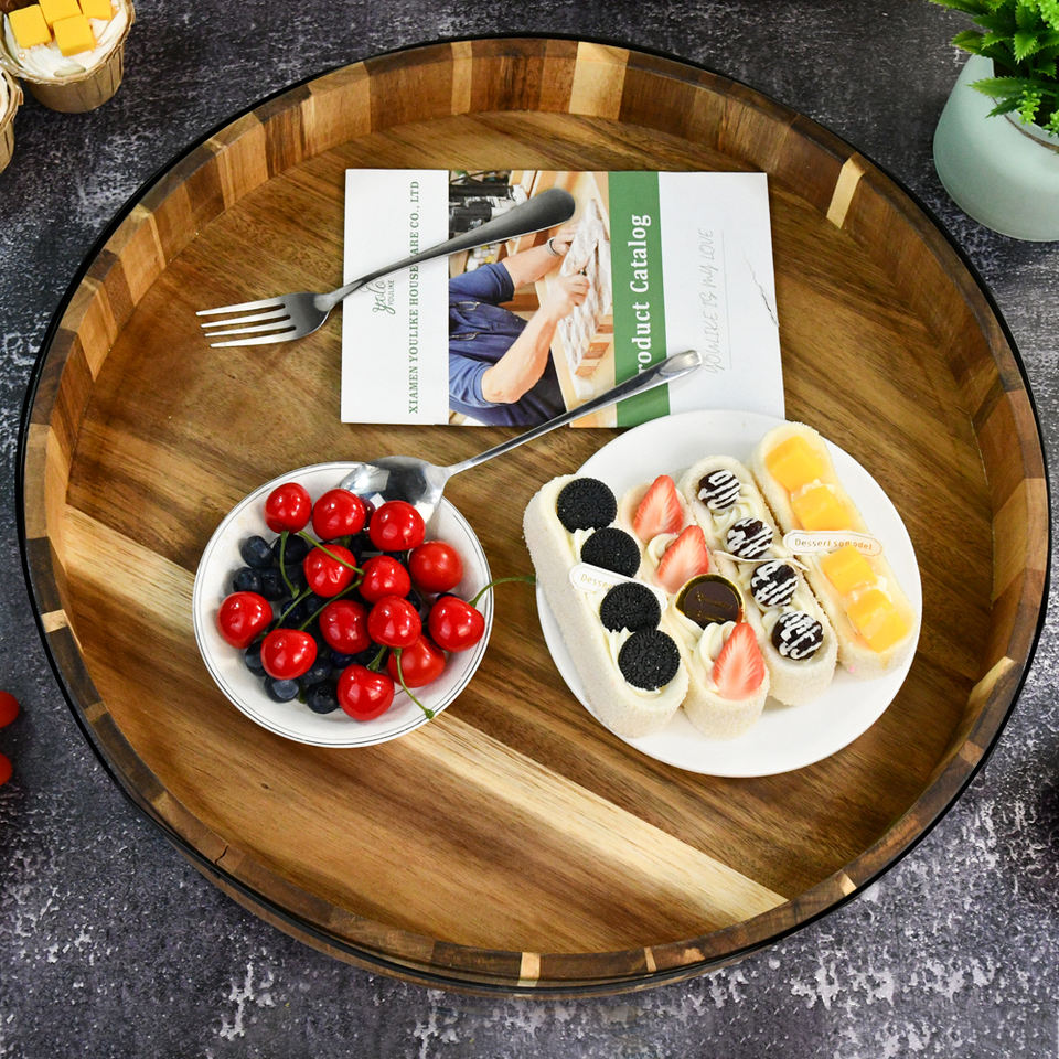 Plateau de service rond classique en bambou écologique, grand format, à un seul niveau, multifonctionnel, pour le salon et la cuisine