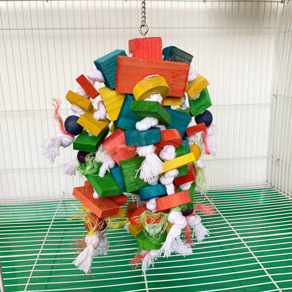 Grand jouet à mâcher en bois Alee Sun pour animaux de compagnie Sac en corde de coton en peluche grise durable Perroquets Chats Chien Fournitures de jeu