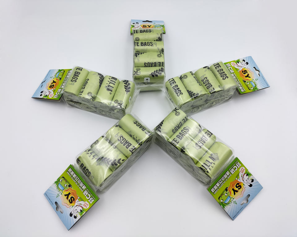 Ensemble de dressage écologique vert clair à 8 rouleaux Sacs de crottes de chien en plastique à la mode de TW pour l'élimination des déchets