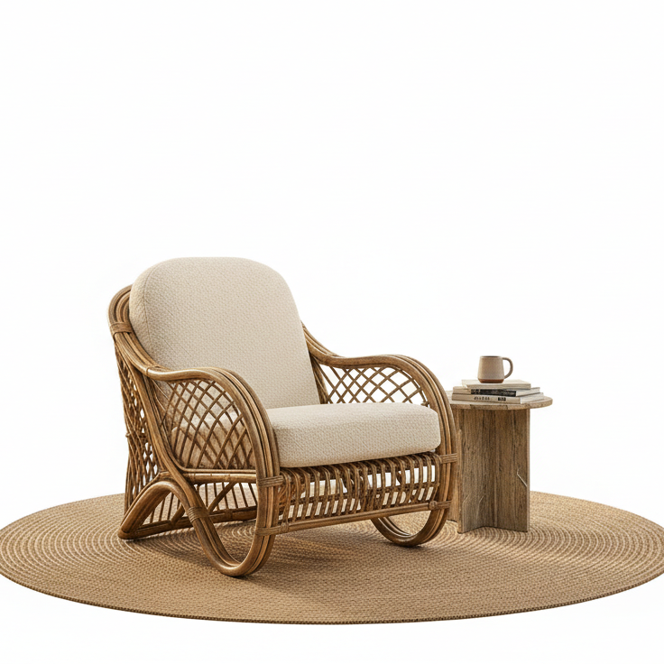 Chaise de salle à manger d'extérieur en rotin minimaliste, écologique, légère, durable et confortable pour villa et hôtel