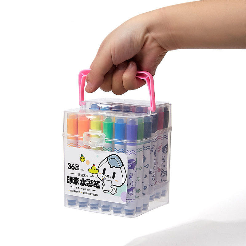 Mini stylo aquarelle écologique 12-36 couleurs marqueur de sceau lavable ensemble tampon en plastique marqueur aquarelle pour enfants dessin