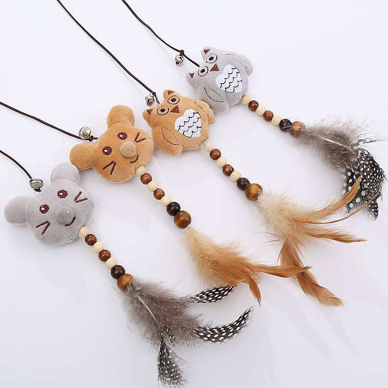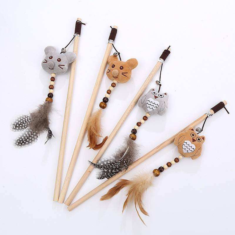 Jouet interactif moderne et écologique pour chats, bâton à plumes amusant avec bois naturel