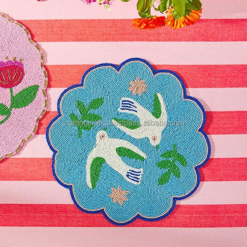 Sous-verre rond moderne écologique perlé de 300 mm de diamètre avec taille personnalisée pour la décoration de table à manger – Vente en gros