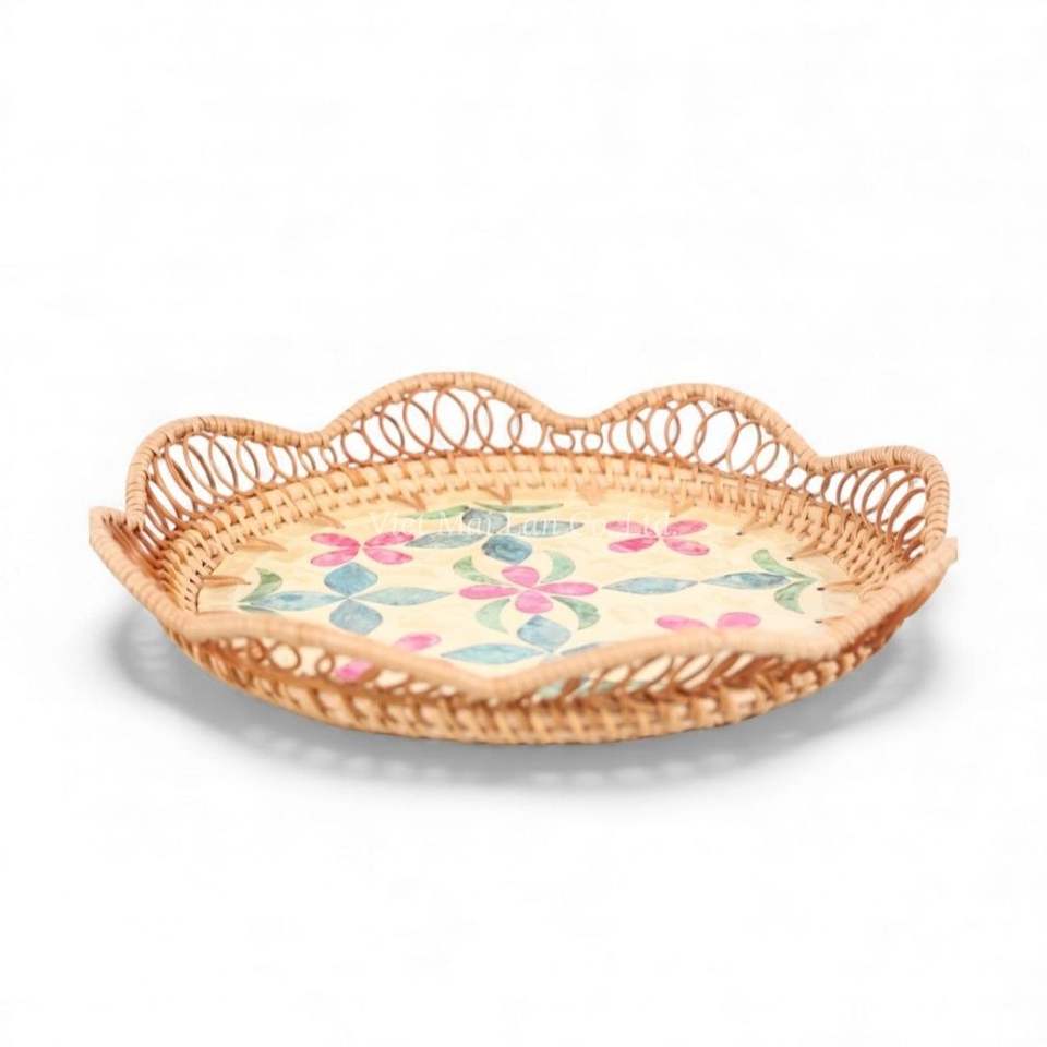 Eco Friendly Mother of Pearl Plate with Traditional Rattan Trim for Dining Table Decor and Home Serving From Vietnam