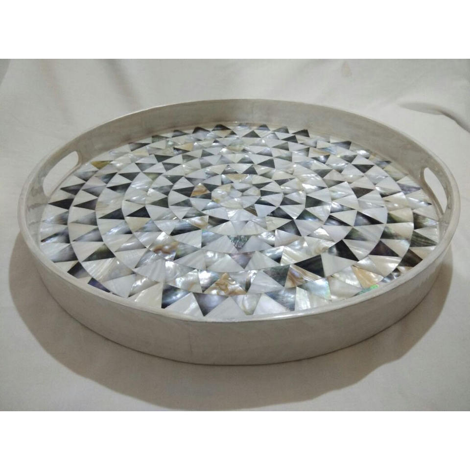 Eco-Friendly Mother of Pearl Round Tray Plate Customized OEM Table Decoration Dishes Made in Vietnam From HNH Craft