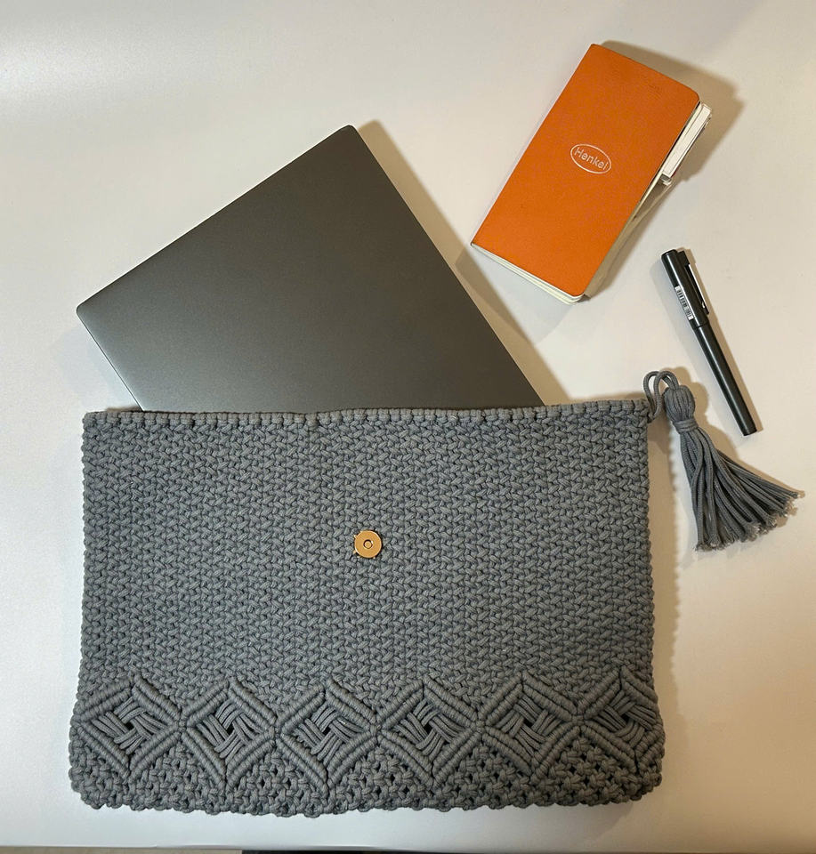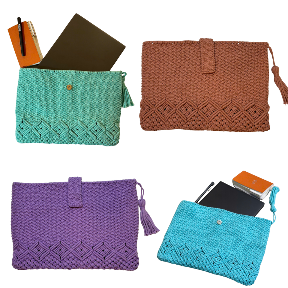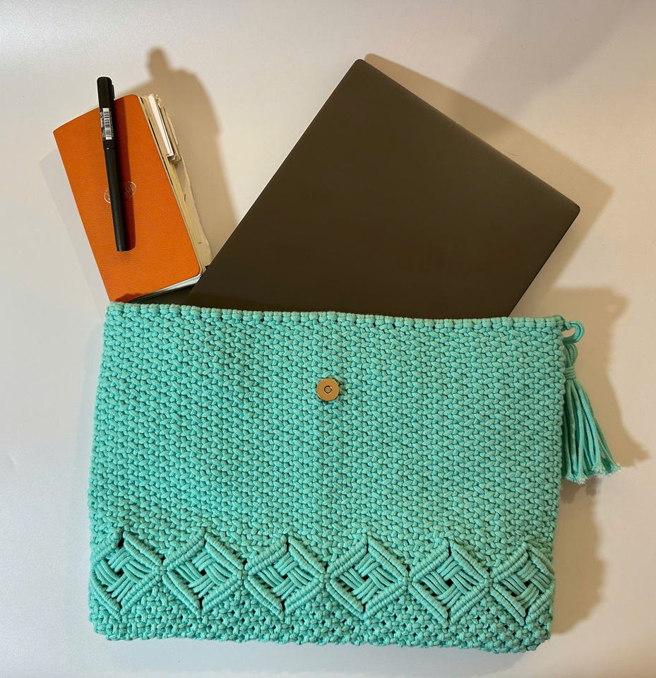 Étui pour ordinateur portable au crochet multicolore écologique, doux, durable et élégant avec fermeture à bouton réglable, accessoire pour femme