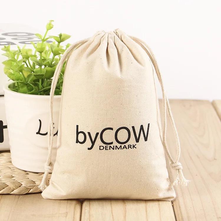 Pochette en mousseline naturelle écologique avec logo personnalisé imprimé, sac en coton biologique pour cadeaux, café, thé, pain, avec cordon de serrage, sac anti-poussière en mousseline