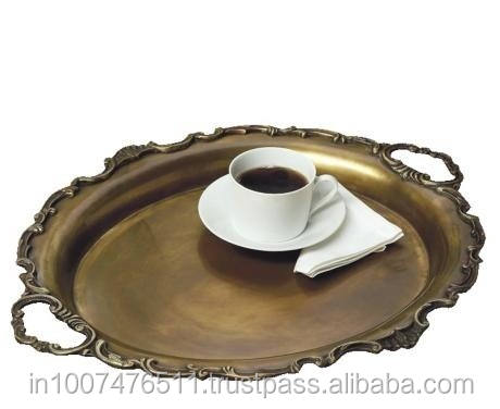 Plateau de service ovale écologique avec finition cuivre, design zen asiatique traditionnel, idéal pour la rentrée scolaire, vaisselle et assiettes, MOQ 100 pièces