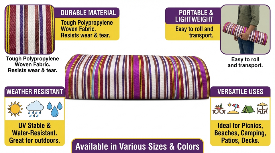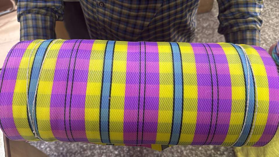 Rouleau de tissu tissé rayé multicolore enduit de PVC écologique, antibactérien, matériau durable pour les sacs de courses réutilisables