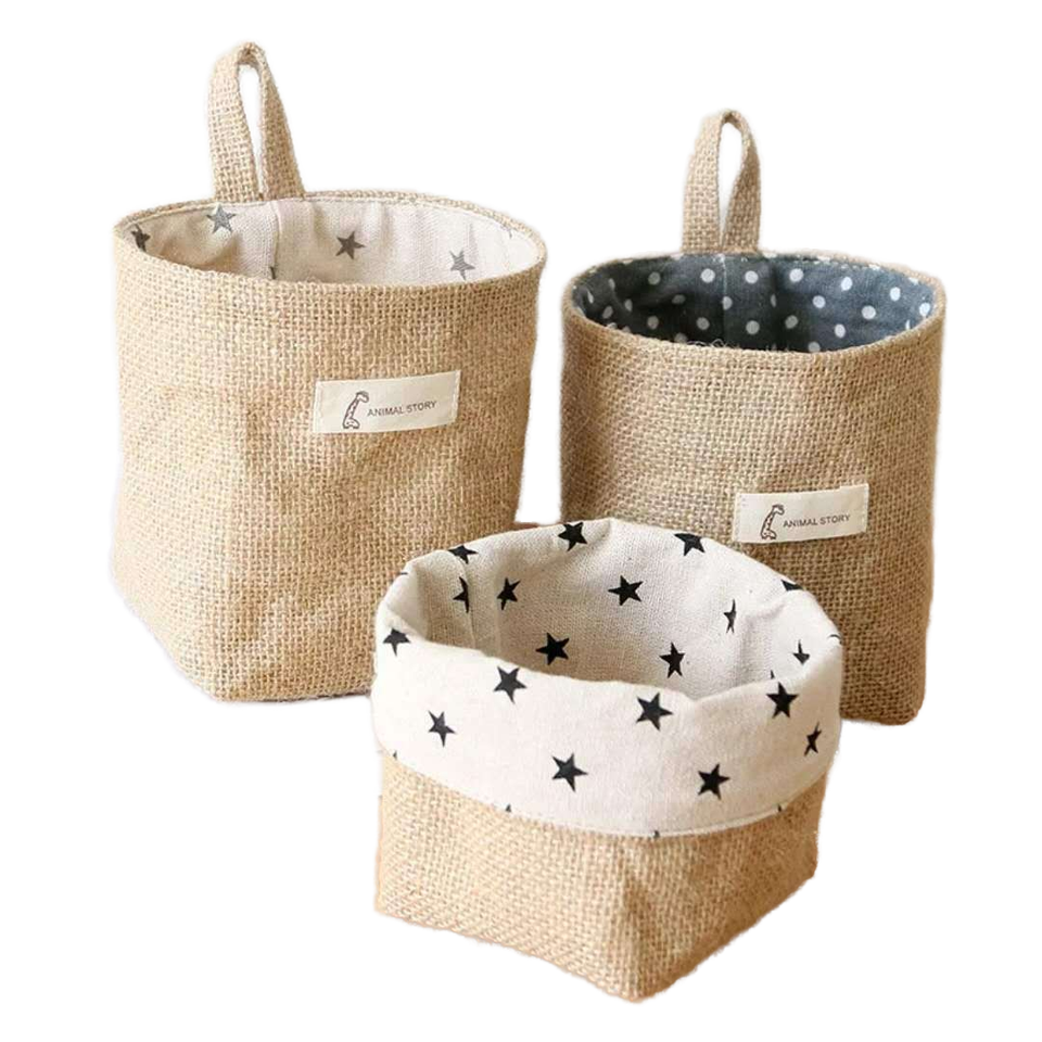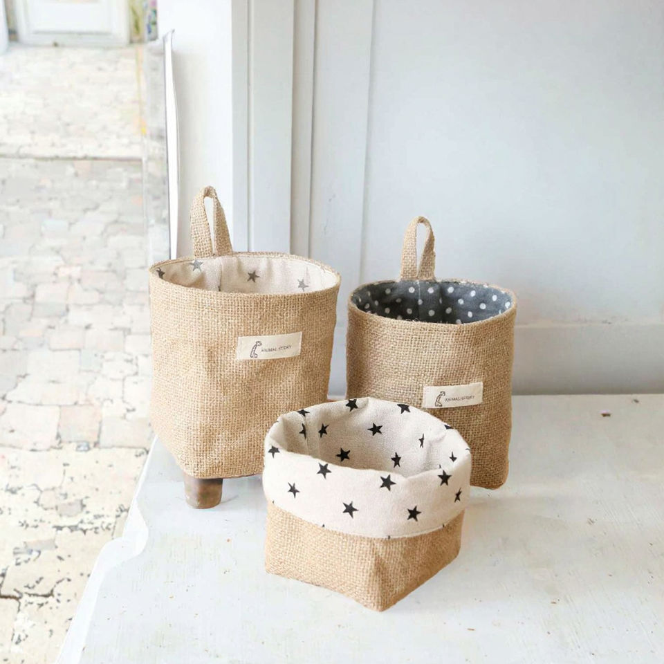 Sac de rangement suspendu multifonction en fibres végétales écologiques, forme cylindrique, pour cuisine, salle de bain, chambre à coucher - Moderne et simple