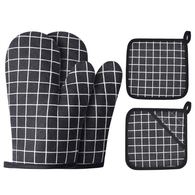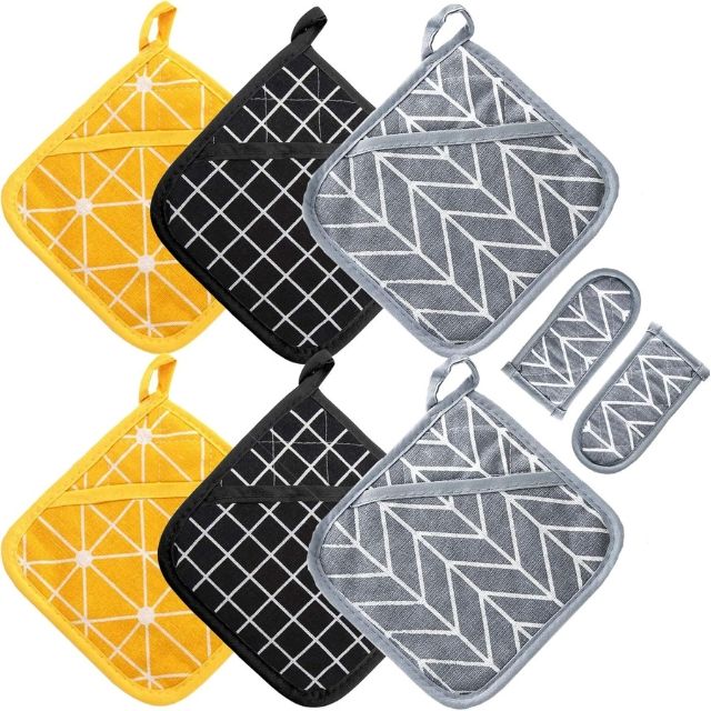 Ensemble de porte-casseroles en coton imprimé écologique avec poche | Mitaines de cuisine modernes réutilisables et résistantes à la chaleur