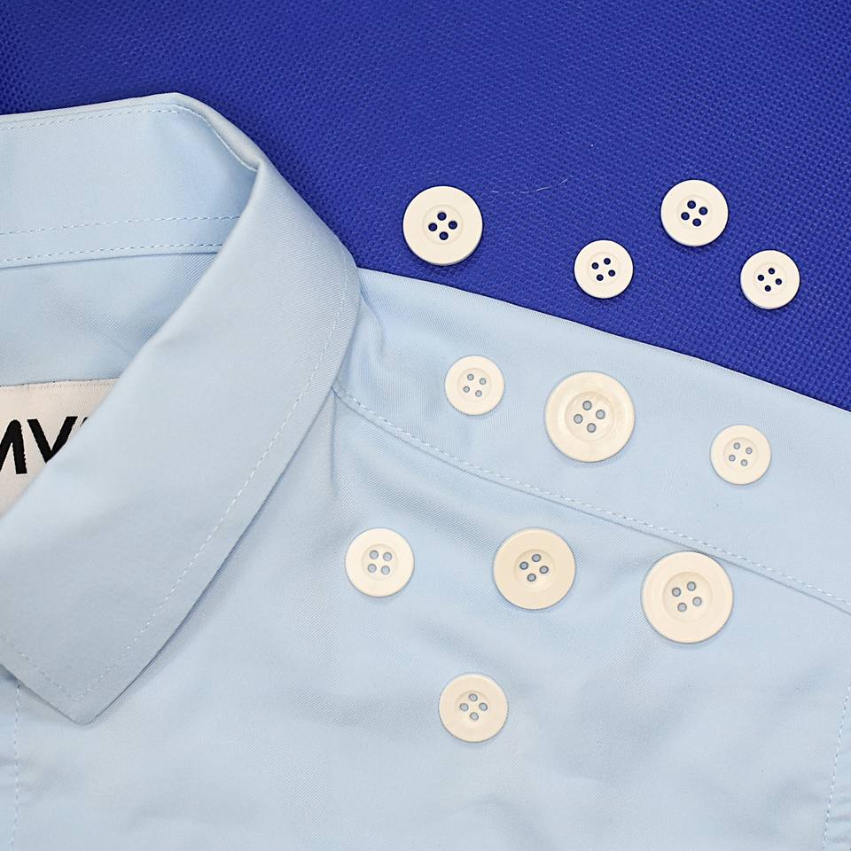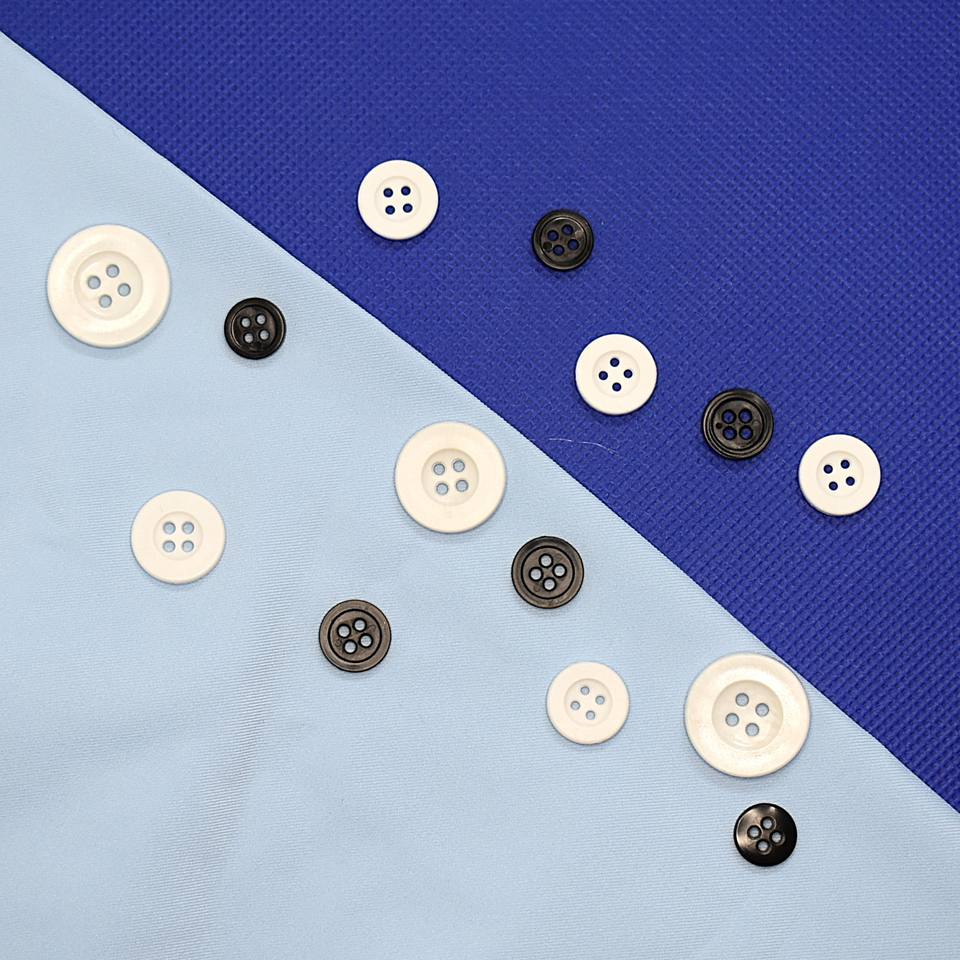 Bouton rond à dos plat à 4 trous en plastique R-PET écologique recyclé à partir de cintres gaspillés avec plusieurs tailles pour vêtements
