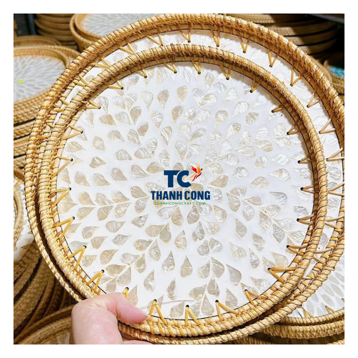 Nom du produit:PLATEAU EN ROTINE NACRE
