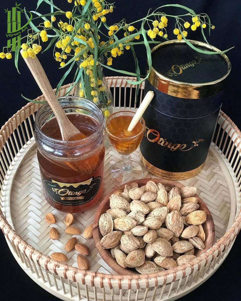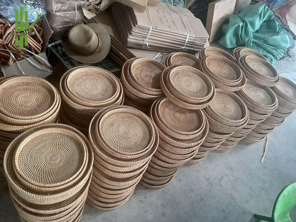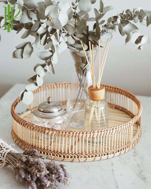 Plateau de service en rotin et bambou écologique, plats et assiettes élégants