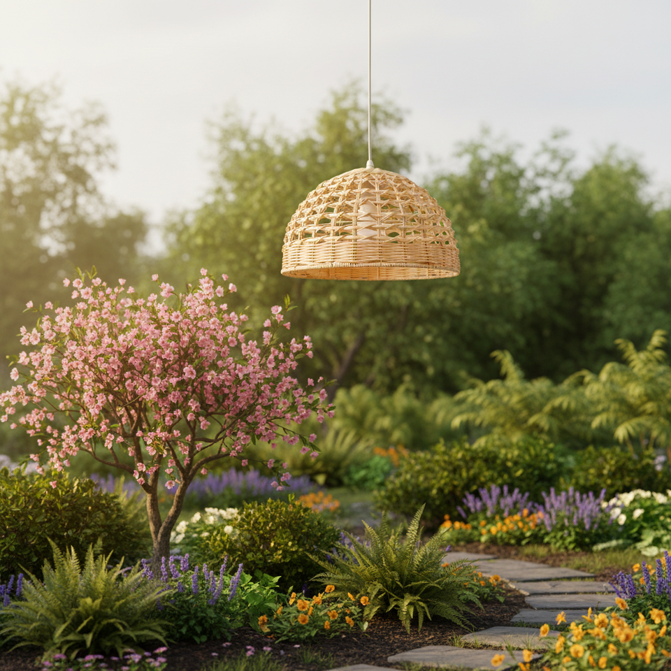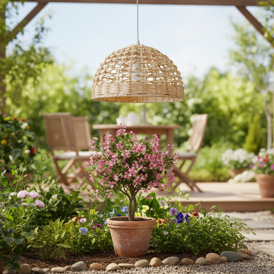 Abat-jour en rotin rustique fait main, écologique, avec taille et couleur personnalisables pour l'éclairage du plafond du salon