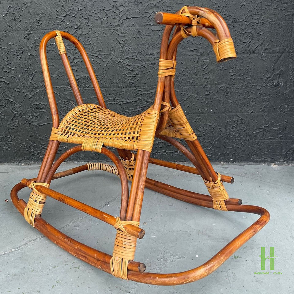 Cheval à bascule en rotin écologique fait main, jouet à bascule en osier naturel pour bébé, décoration pour chambre d'enfant et extérieur, fournisseur Vietnamien
