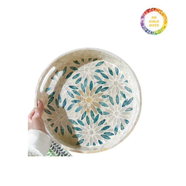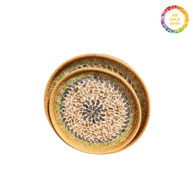 Plateau en rotin écologique avec incrustation de nacre-Plateau de service décoratif fait main pour la maison, l'hôtel ou les cadeaux