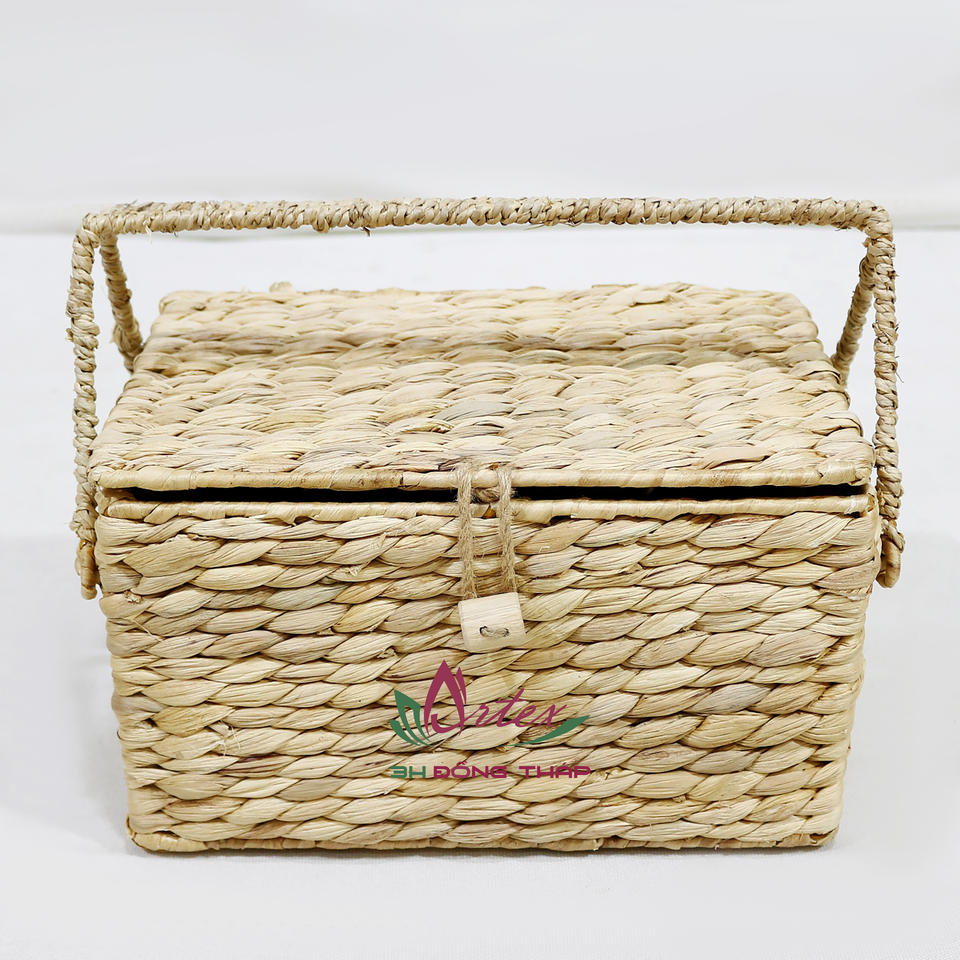 Eco Friendly Rectangle Water Hyacinth Storage Hamper Basket , Woven Bin For for Fresh Food Storage & Picnic Use