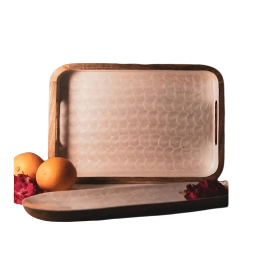 Plateau de service en bois de mangue de forme rectangulaire écologique avec émail blanc perle et tailles personnalisées