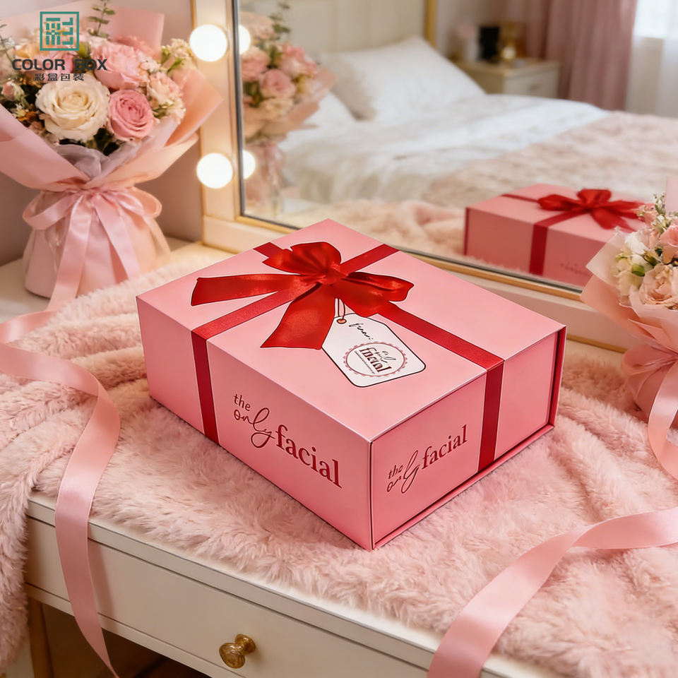 Boîte cadeau rigide écologique et recyclable avec fermeture magnétique, ruban et nœud, impression UV quadricolore pour festivals, mariages et événements