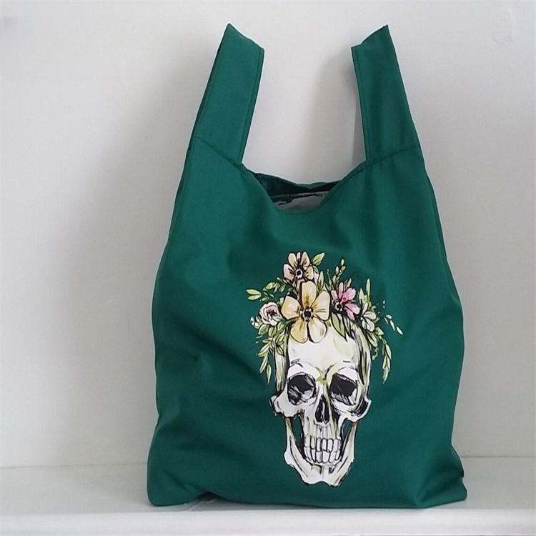 Sac en polyester recyclé pliable et écologique, de qualité supérieure, sac fourre-tout en nylon recyclé avec étiquette tissée