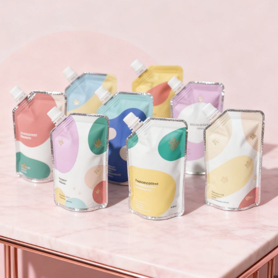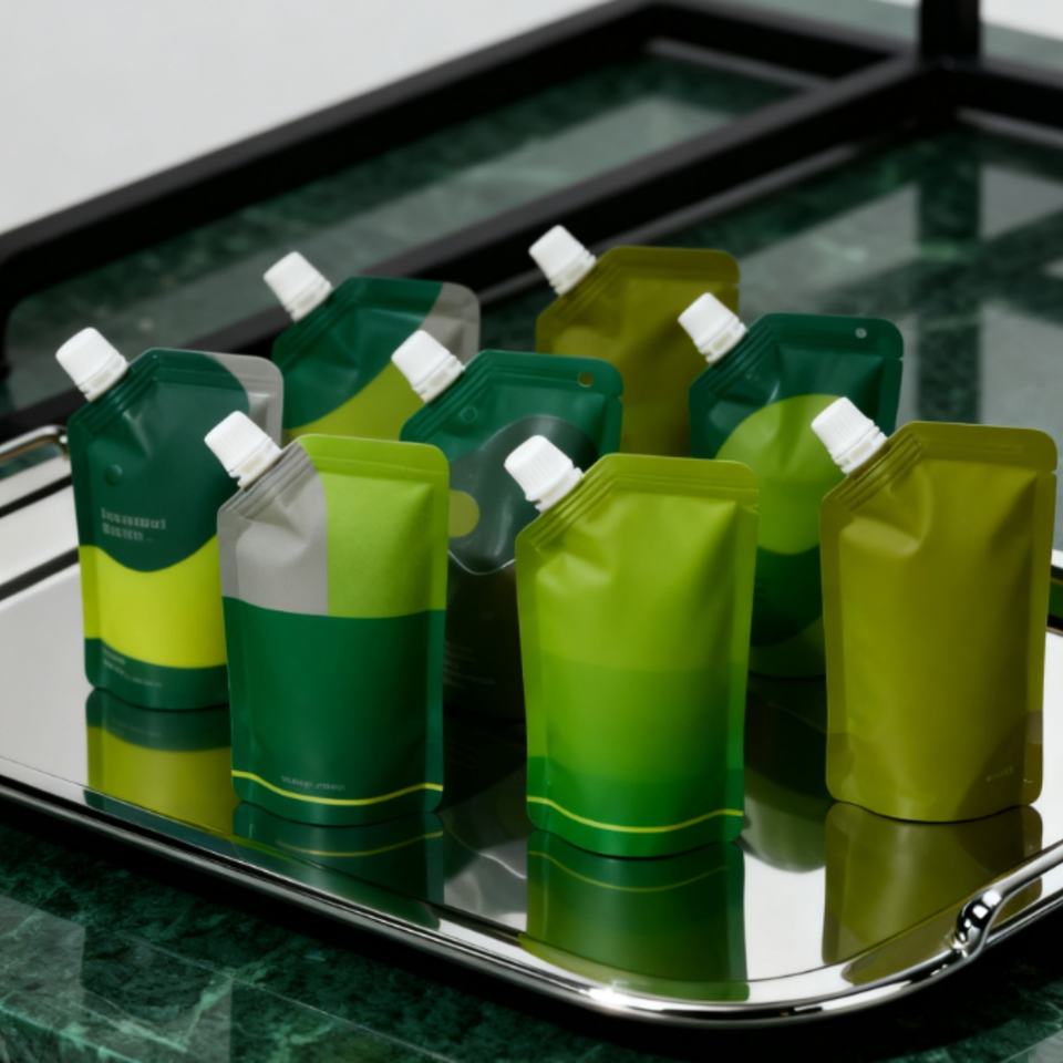 Emballage cosmétique en plastique écologique rechargeable, pochette souple noire givrée avec bec verseur pour shampoing, parfum, lotion, liquide