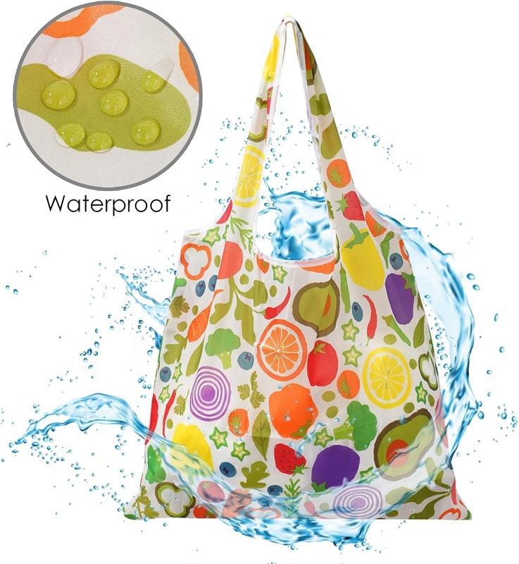 Sac à provisions pliable robuste en polyester réutilisable écologique Sac fourre-tout d'épicerie pliable avec logo imprimé personnalisé