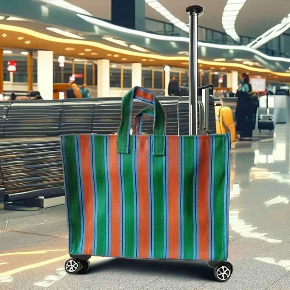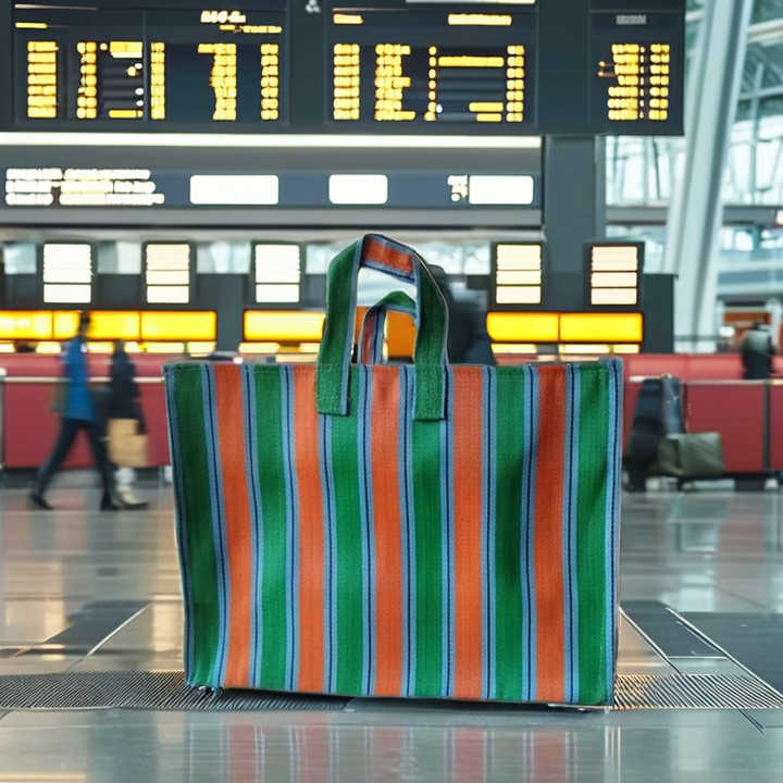 Sac à provisions en nylon à fermeture éclair réutilisable écologique tissé à la main rayé sacs à cosmétiques de plage en plastique recyclé étuis Style de mode