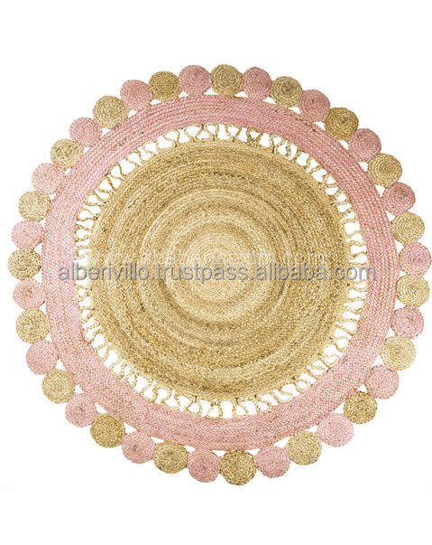 Tapis en jute tissé à la main de l'Inde naturelle ronde écologique pour la maison et les voyages Techniques tissées du salon