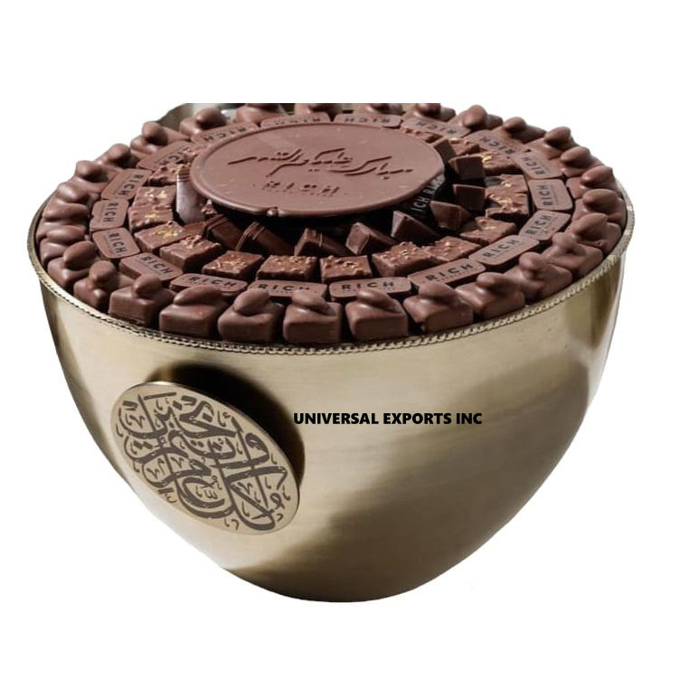 Bol à chocolat rond en acier inoxydable poli, écologique, avec motif pièce de monnaie arabe, design simple et luxueux, et éléments décoratifs