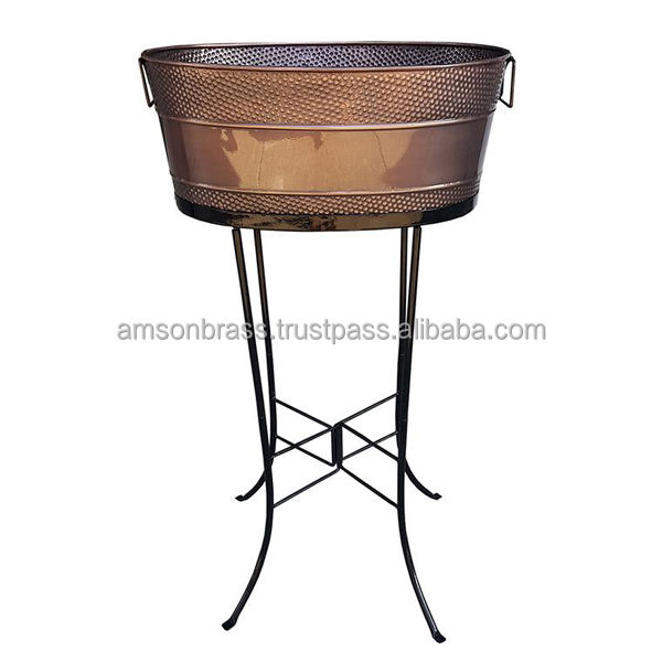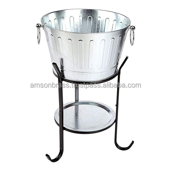 Seau à bière de forme ronde écologique avec poignée latérale Refroidisseur à vin en métal décoratif Seau à glace avec support