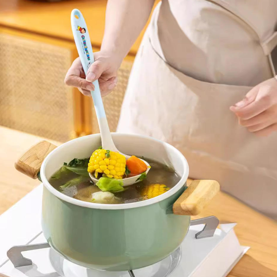 Ensemble d'ustensiles de cuisine en silicone écologique Poêle antiadhésive Cuillère à soupe spéciale Passoire et cuillère à riz avec design Cartooney