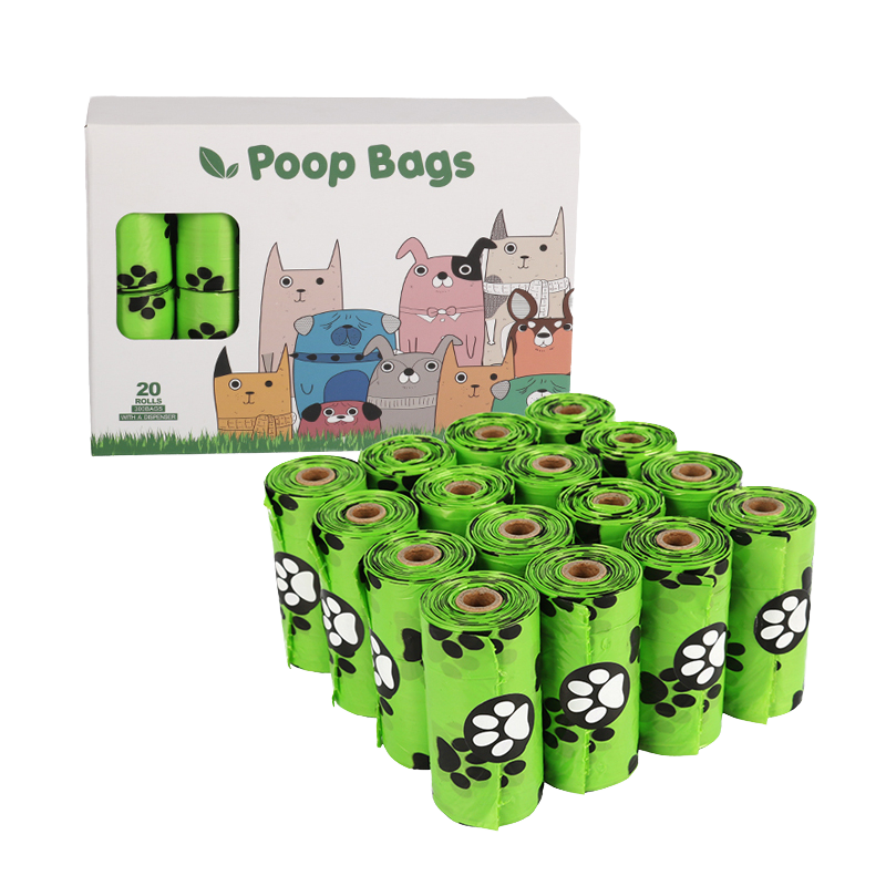 Sacs à déjections canines écologiques en plastique PE imprimés avec des pattes pour l'élimination des excréments d'animaux