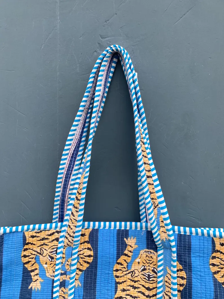 Sac fourre-tout écologique en coton uni léger pour l'été et l'automne, fait main, imprimé au bloc, matelassé, avec poche pratique, idéal pour la plage