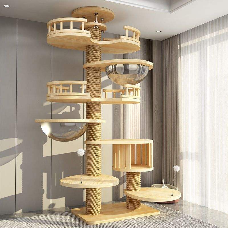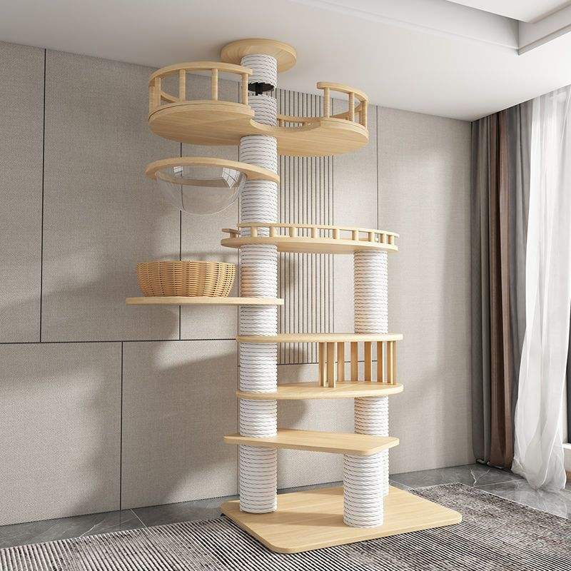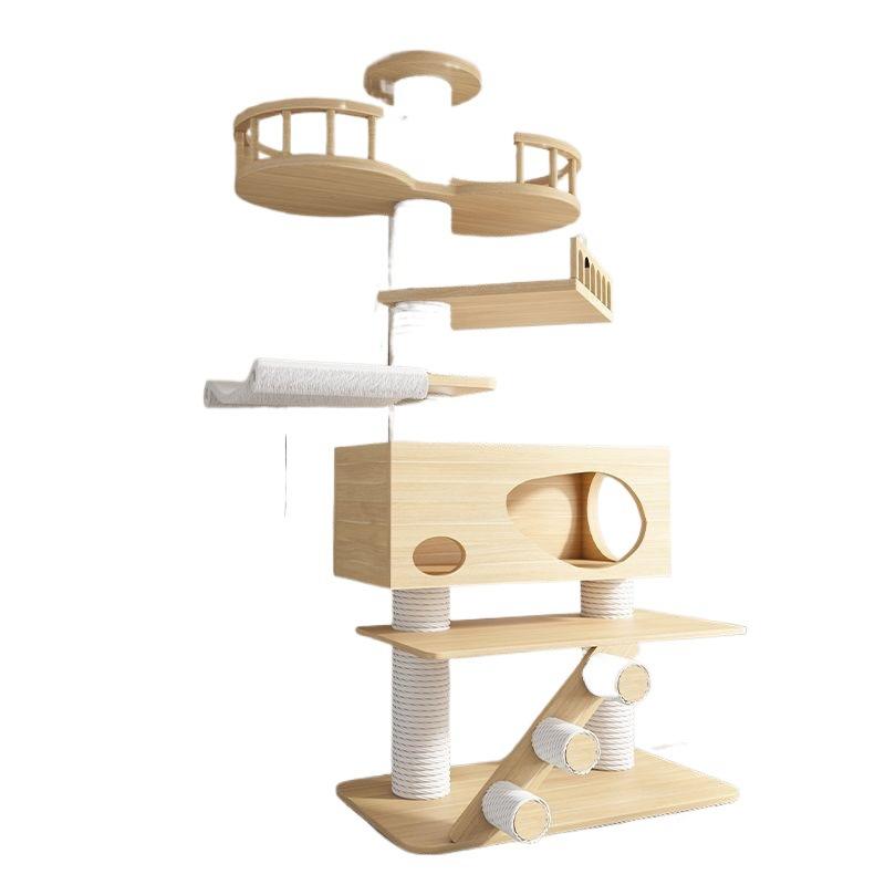 Arbre à Chat Moderne en Bois Massif Écologique 5 Niveaux, Hauteur 60 cm, Assemblage Sans Perçage Non Intrusif, Cadre d'Escalade pour Salon