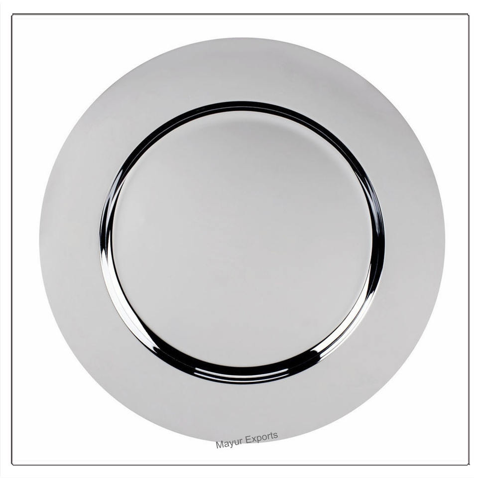 Assiette de présentation classique en acier inoxydable écologique, diamètre 33 cm, polie, solide, pour mariage, sous-assiette de mariage, décoration de mariage, Mayur Exports